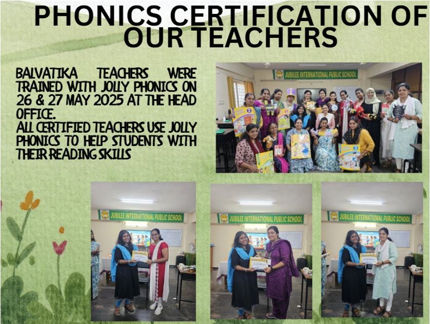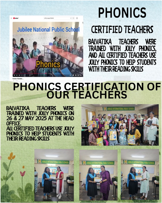 Jolly Phonics is widely recognized as an effective, fun, and systematic method for teaching early literacy in kindergarten. It uses a synthetic phonics approach, focusing on teaching the sounds of letters before blending them to read wordsIt teaches the 42 main sounds of the English language (including letter sounds and digraphs like 'sh', 'th'), not just the 26 alphabet names, providing a thorough foundation for decoding. Children quickly learn to blend sounds to read simple words (e.g., c-a-t becomes 'cat') and begin reading at an earlier age, which significantly boosts confidence. Studies have shown children taught with this method often Each of the 42 sounds is taught with a song, story, and action (kinesthetic learning). This multi-sensory approach (visual, auditory, and kinesthetic) makes learning enjoyable and helps children remember the sounds more easily.Jolly Phonics sets up children for long-term academic success by making the complex task of learning to read and write in English accessible and fun.So, all our teachers are Jolly Phonics certified and teach children Jolly Phonics for better reading skills!